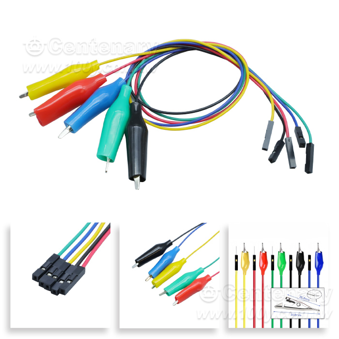 i 164983 杜邦(F)+平口鱷魚夾-5條/組-30cm 杜邦母轉平口鱷魚夾 測試線 30CM i 133482 TLA2303-16AWG-紅+黑+黃+綠+藍-1M 中號紫銅鱷魚夾測試線 1M